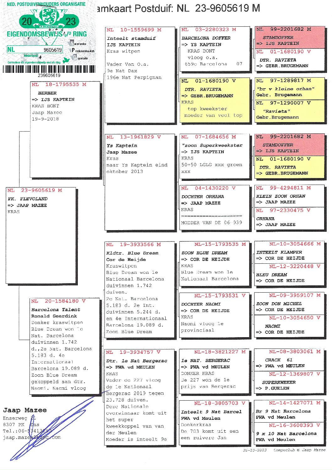 Jaap Mazee, Ens schenkt een jonge duif 2023 (zie stamboom).